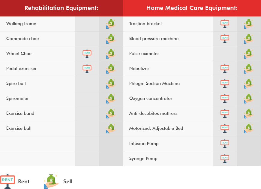 Above is a non-exhaustive list of items available for sale or rental from Sunway Home Healthcare. As with any treatment or therapy, please refer to your Sunway Home Healthcare provider for recommendation.